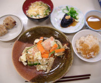 今日は10月キッズキッチンでした。メニューは幸芋の炊き込みご飯、かき玉汁、鮭のチャンチャン焼き、、揚げ茄子、胡 …
